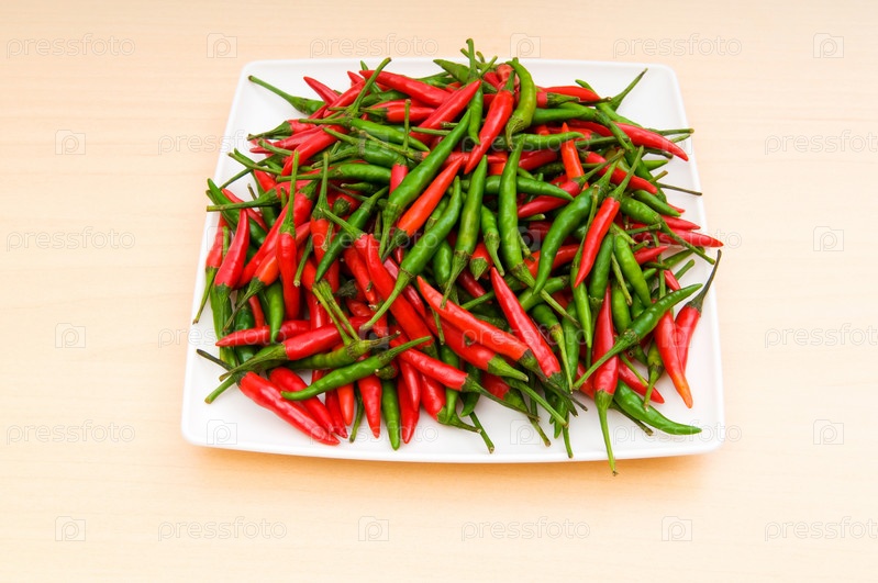 Острый перец на белой тарелке