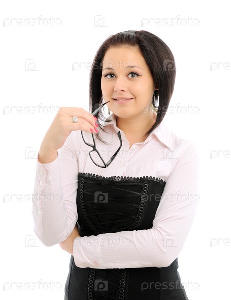 Брюнетка с очками на белом фоне