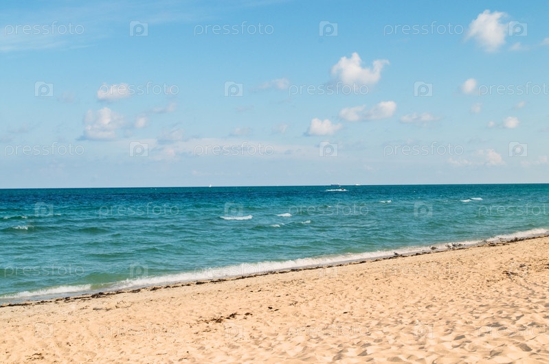 Песчаный пляж, яркий летний день