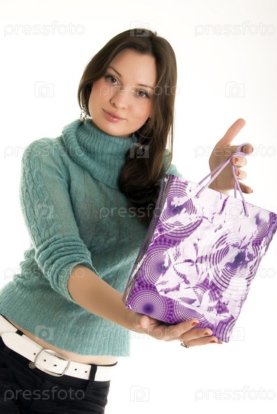 Молодая брюнетка с пакетом