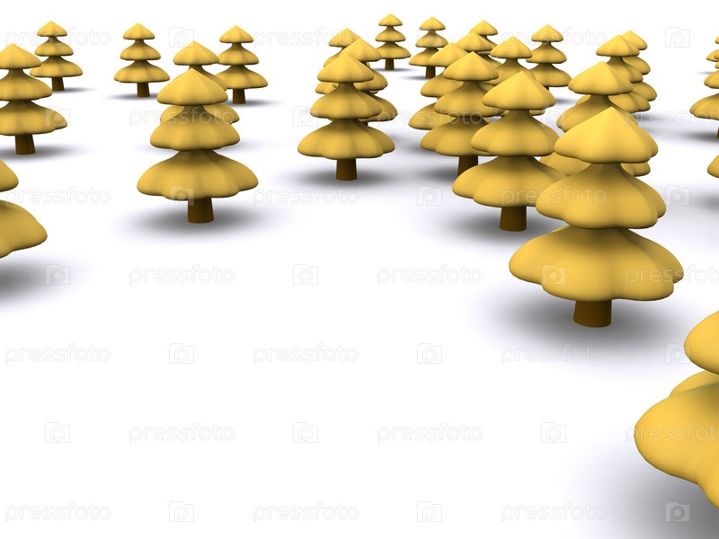 Яркие желтые елки на белом фоне