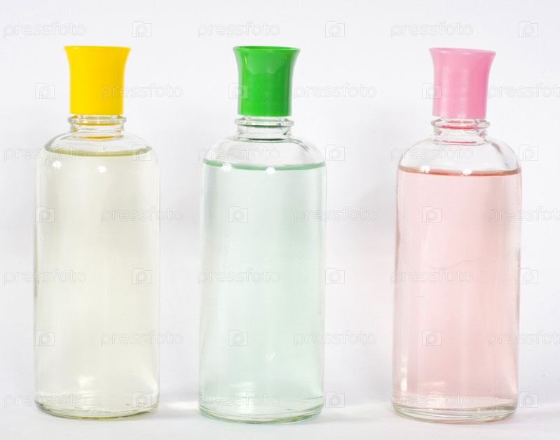 Три бутылька на белом фоне