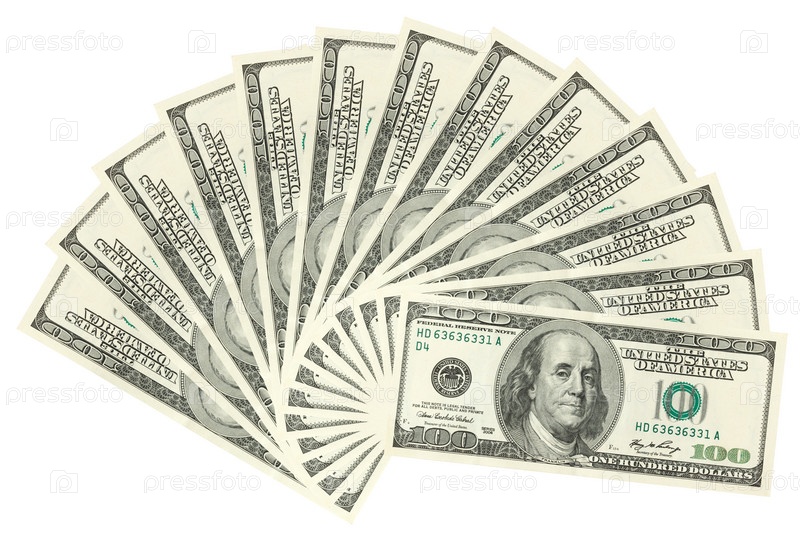 Сотни долларов на белом фоне