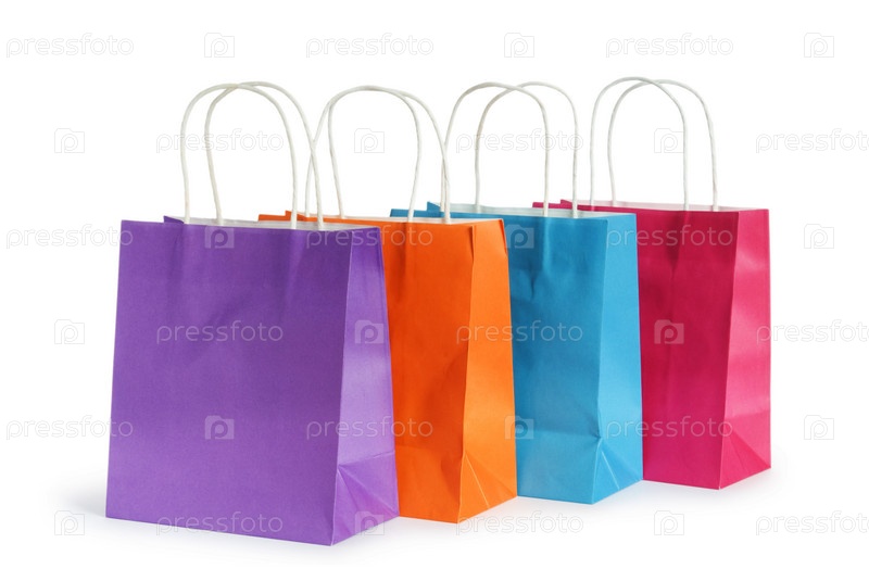 Бумажные сумки для покупок на белом фоне