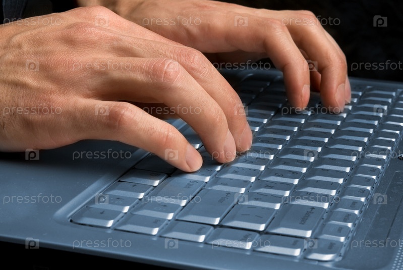 Мужские руки, печатающие на клавиатуре