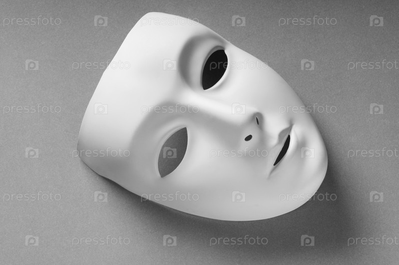 Театральная маска крупным планом на сером фоне