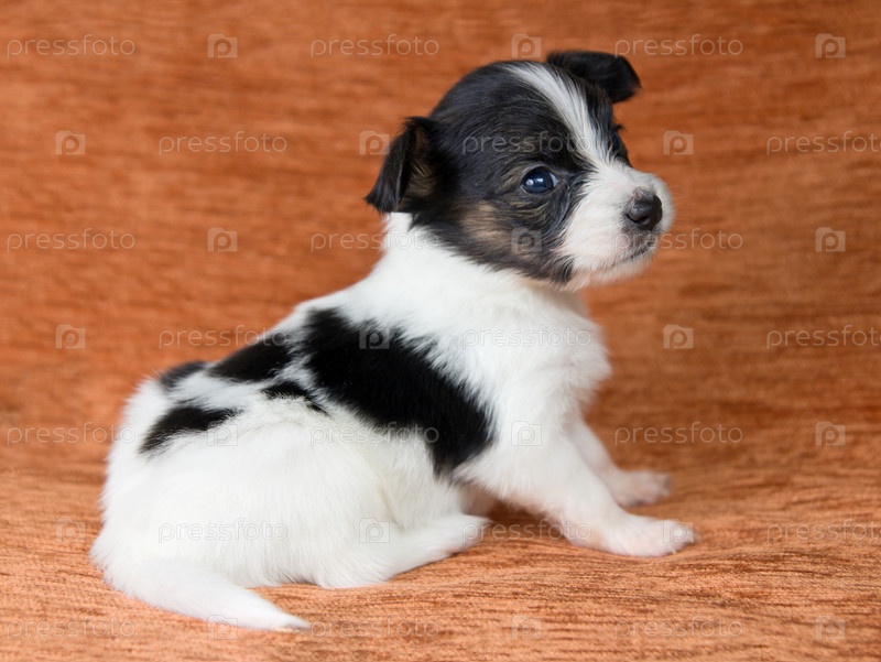 Щенок папийона на диване крупным планом