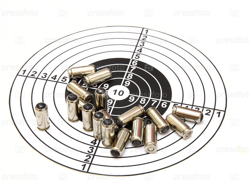 Патроны для пистолета лежат на мишени