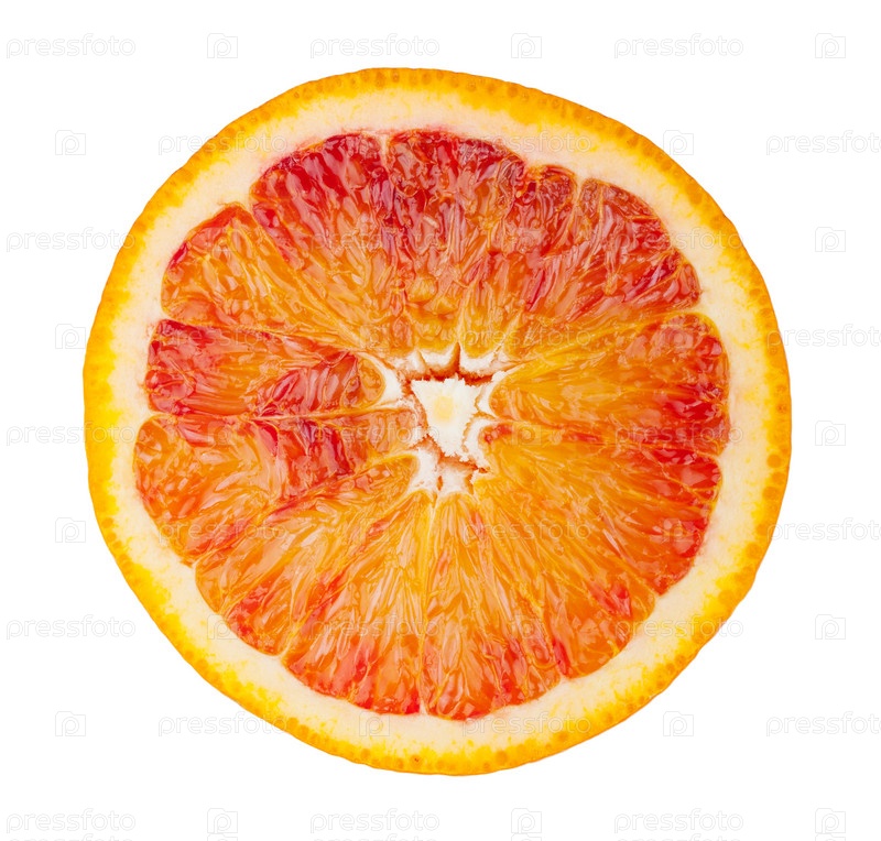 Ломтик кроваво-красного спелого апельсина