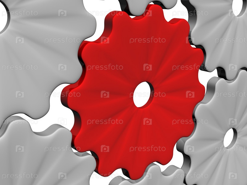 3D шестерени с крупным планом на белом фоне