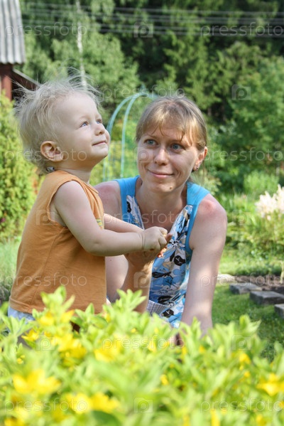 Мать и ребенок на даче