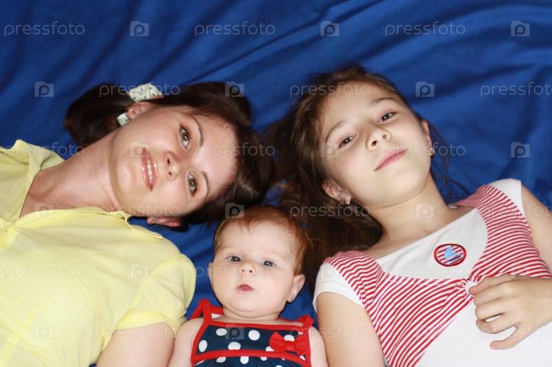 Красивые девочки с мамой на синем фоне