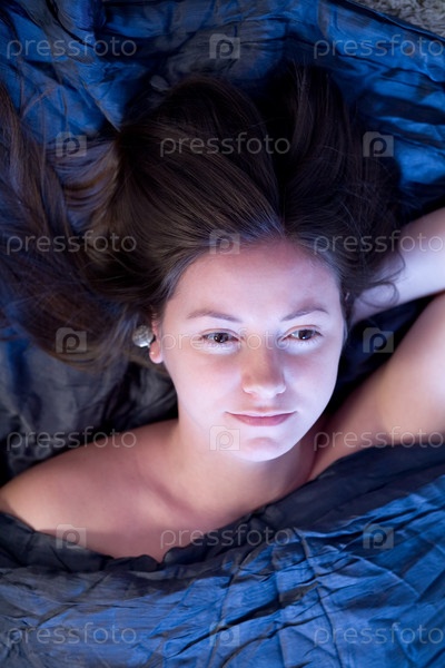 Портрет женщины под синим одеялом