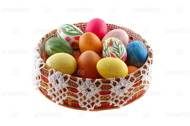 Пасхальная корзинка с крашеными яйцами