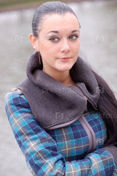 Молодая симпатичная брюнетка на открытом воздухе