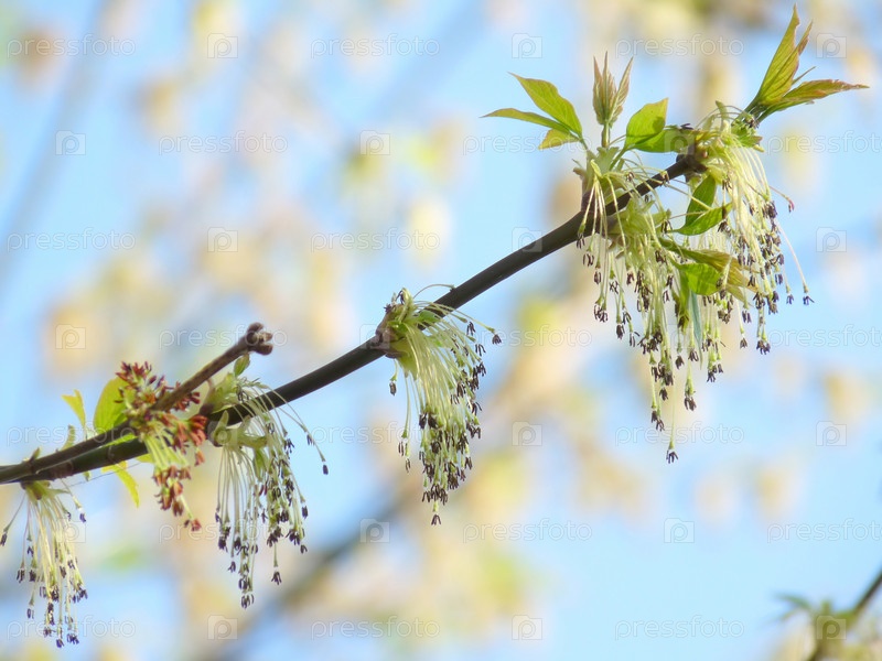 Веточка с молодыми листьями крупным планом