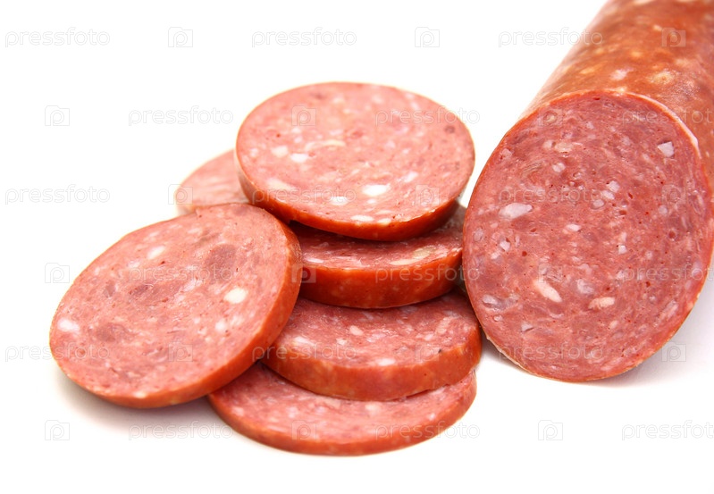Колбаса на белом фоне