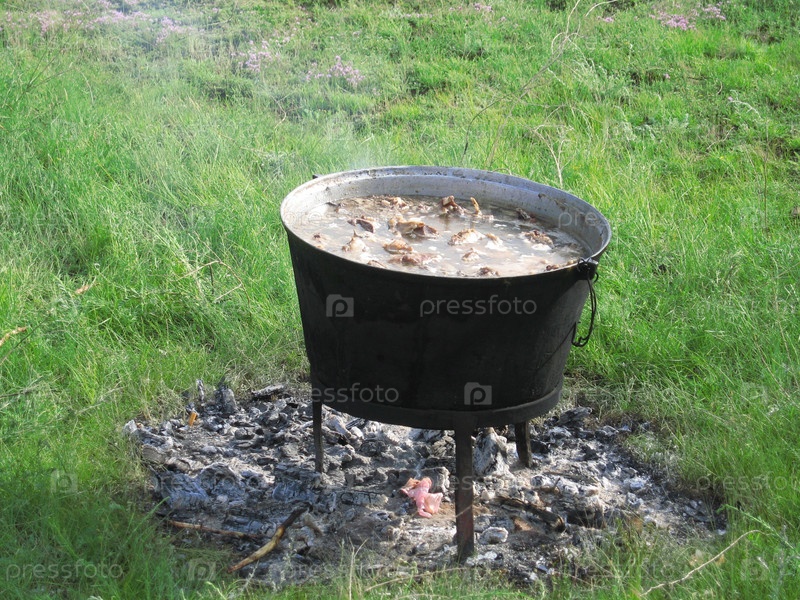Котелок с едой, приготовленной на костре