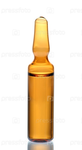 Ампула с лекарством на белом фоне