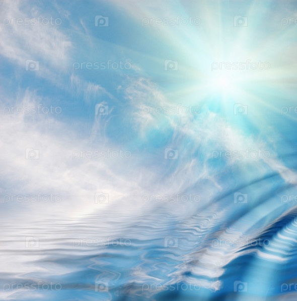 Солнце, небо, облака и вода в качестве фона