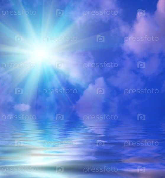 Солнце, небо, облака и вода в качестве фона