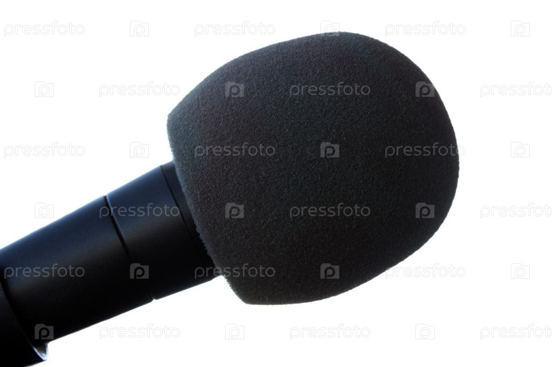 Студийное оборудование - черный микрофон, изолированный на белом