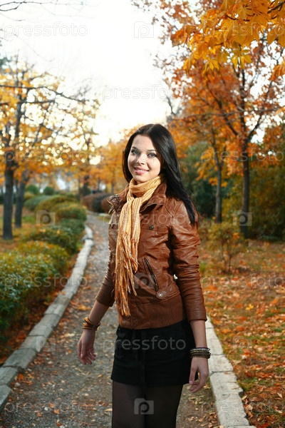 Портрет красивой девушки на тропинке в осеннем парке