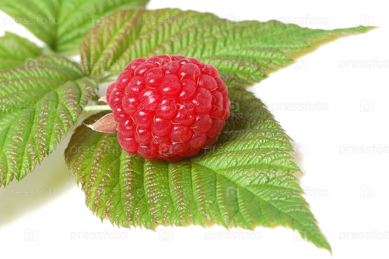 Спелая малина крупным планом на белом фоне