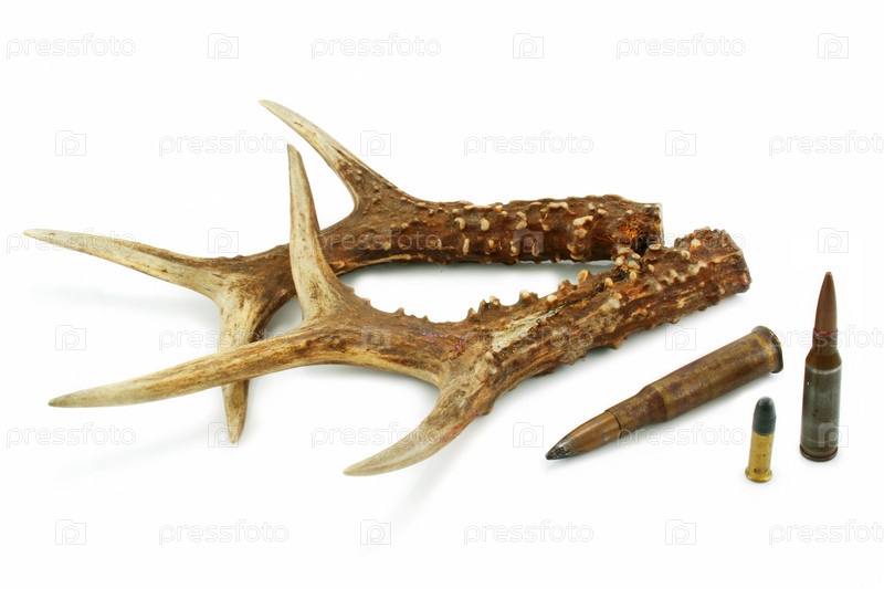 Пара оленьих рогов и пуль изолирована на белом фоне