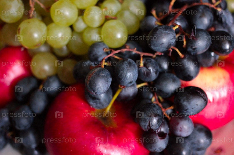 Спелый виноград и сочные яблоки как иллюстрация сбора урожая