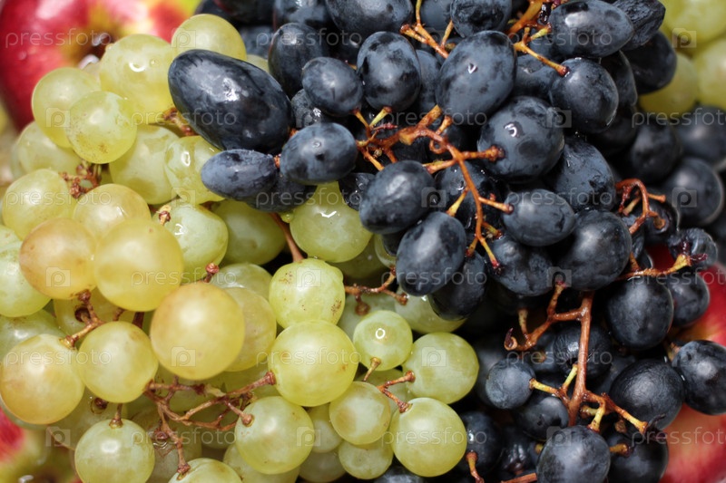 Спелый виноград и сочные яблоки как иллюстрация сбора урожая