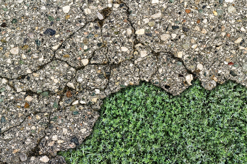 Кусок старого асфальта с зеленой травой
