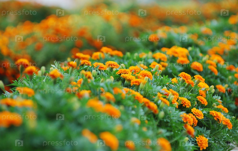 Клумба с оранжевыми бархатцами