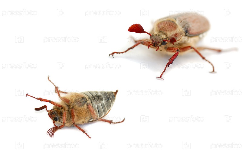 Майские жуки на белом фоне