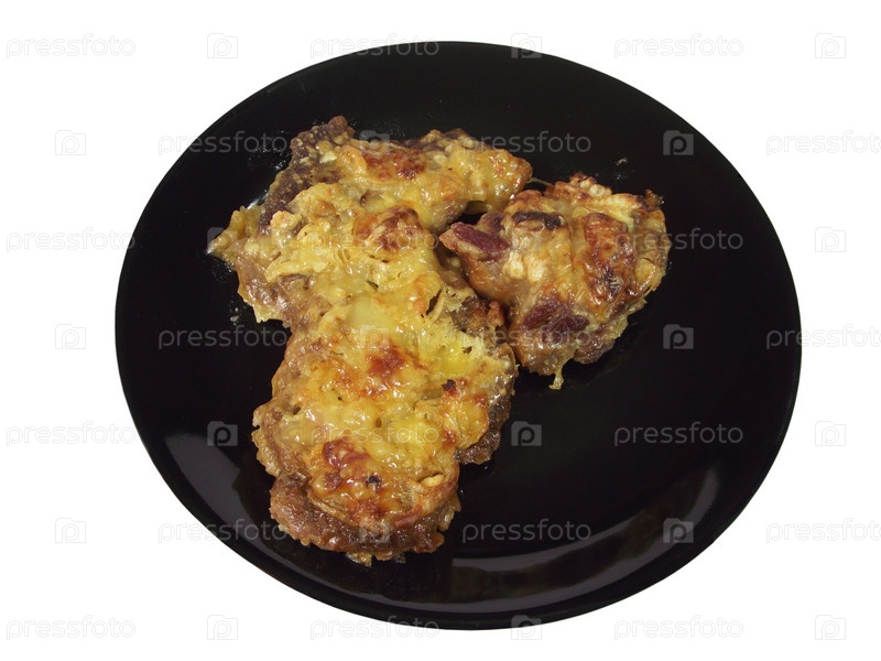 Отбивная под сыром на черной тарелке