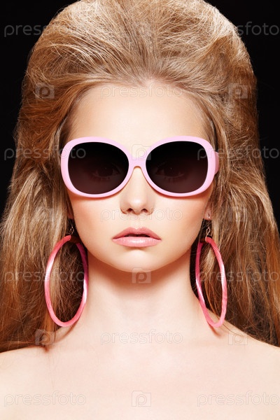 Молодая девушка в розовых солнезащитных очках