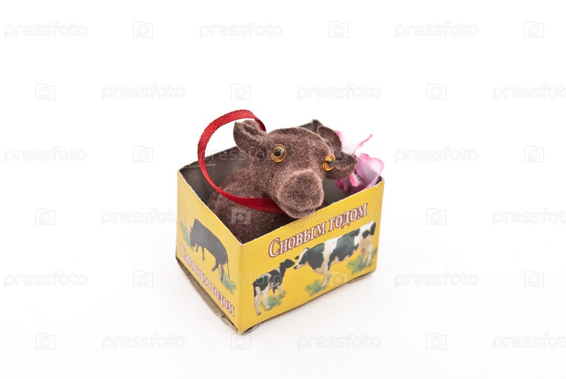 Игрушка в коробке на белом фоне