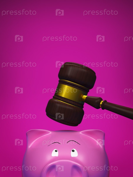 Копилка и молоток на розовом фоне