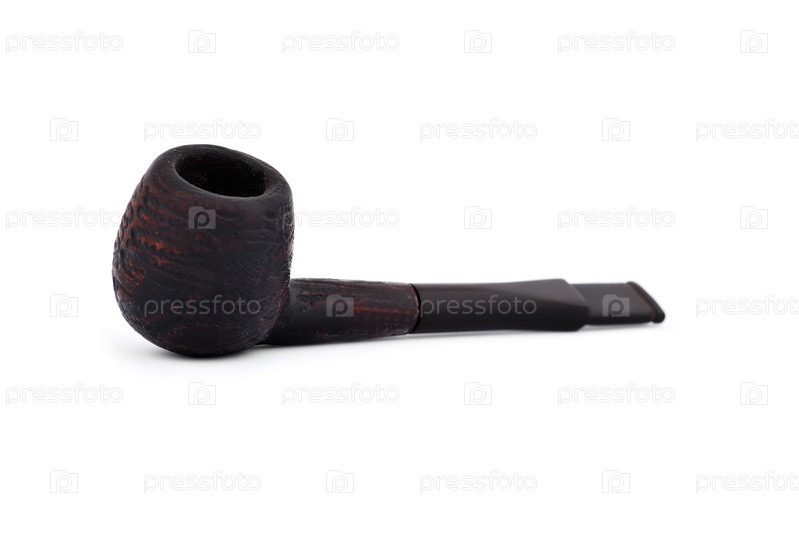 Старая деревянная трубка на белом фоне