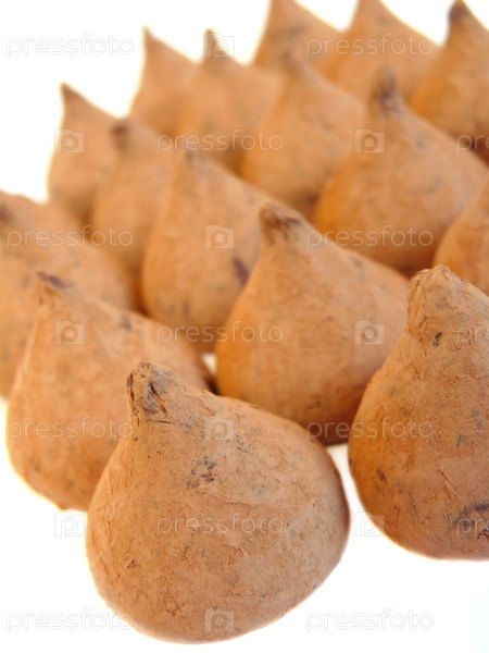 Трюфели крупным планом на белом фоне