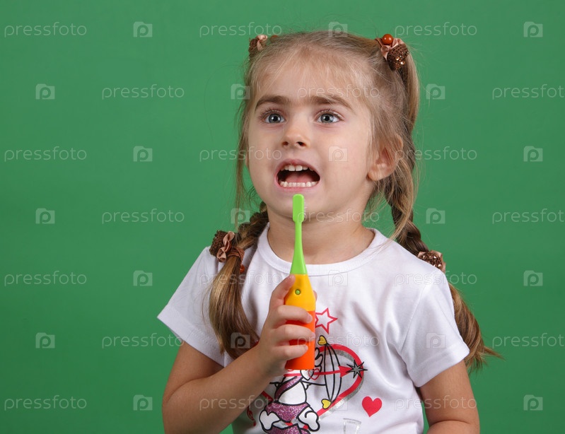 Девочка чистит зубы зубной щеткой