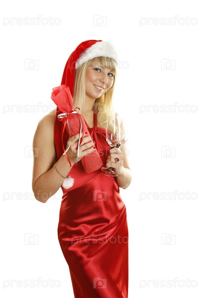 Портрет красивой девушки в новогоднем костюме на белом фоне