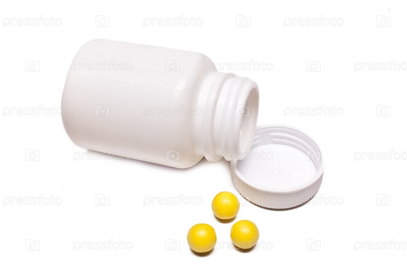 Баночка с витаминами на белом фоне