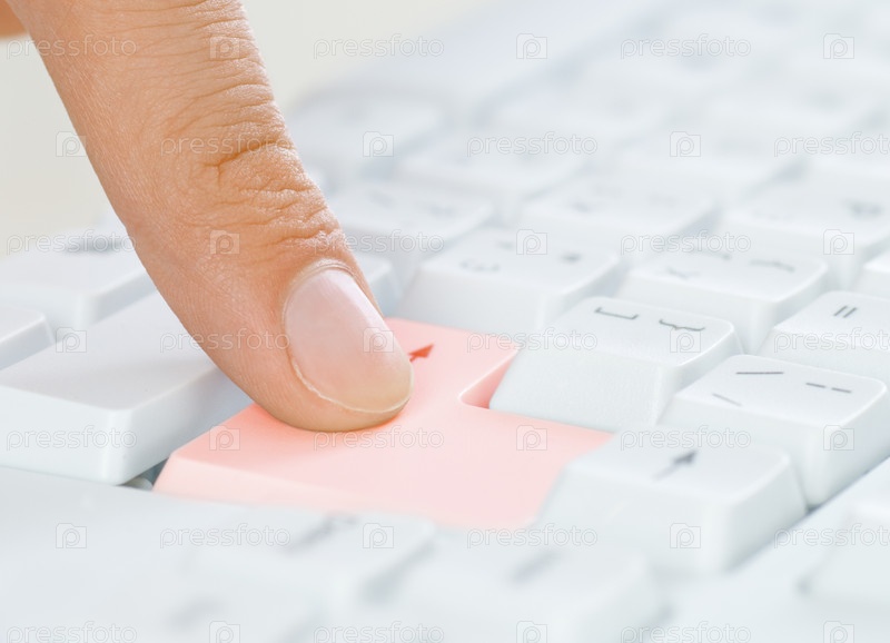 Близкий снимок руки секретарши, касающейся клавиш компьютера