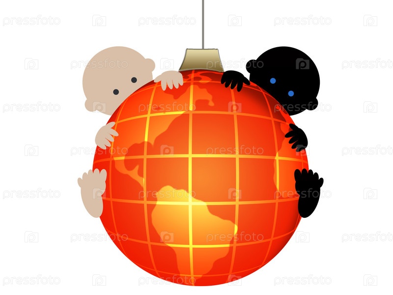 Концепция мира во всем мире: два ребенка разных наций на земном шаре