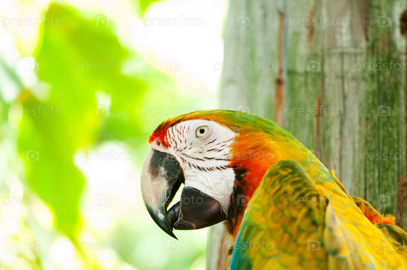 Красочный попугай сидит на ветке