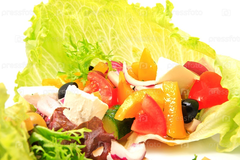 Вегетарианский салат из свежих овощей на белом фоне