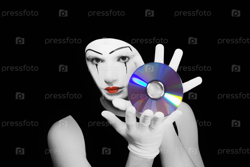 Портрет мима с компакт-диском на черном фоне