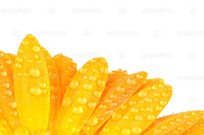 Лепестки цветка с каплями воды на белом фоне