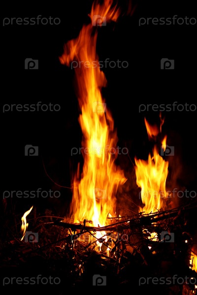 Горящий костер на черном фоне